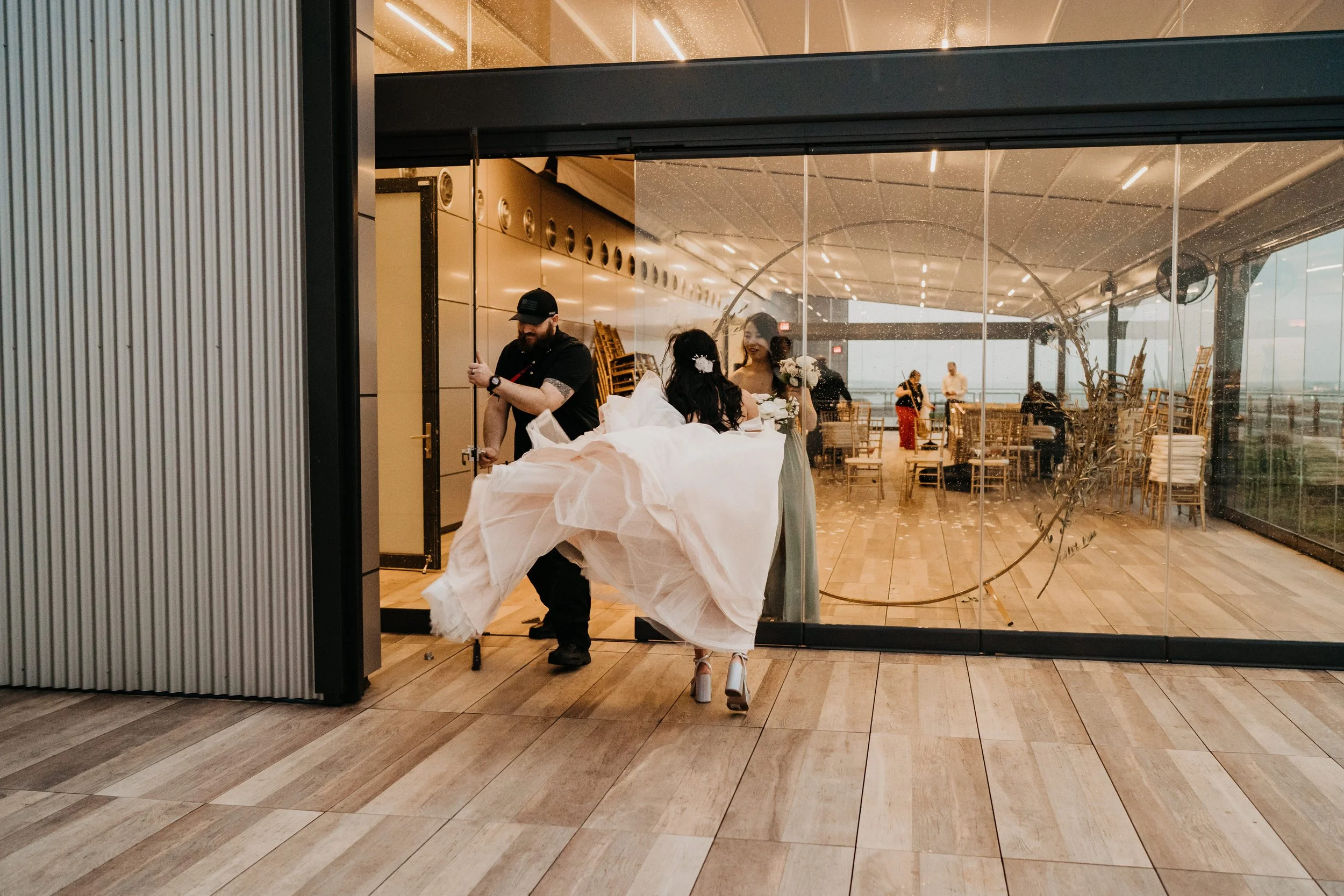 The day before the wedding, weird storms were predicted, so I made the decision to do everything indoors at the Spy Museum (including ceremony in their gorgeous enclosed space on the roof). The day of the wedding dawns, and everyone starts questioning me "It's gorgeous out, are you sure you want to move it inside?!" I said "I believe in the Capital Weather Gang...let's stick with indoors" As always...this is why you hire an experienced planner. Because by the time the ceremony started, there was quite the wind storm outside. By the time it ended, the winds were so strong even the Spy Museum's former military, VERY strong looking head of security could BARELY pull the doors open -- that's how strong the wind was!!! In fact, after we had moved all of the guests downstairs for cocktail hour, the bride and groom were practicing their first dance on the roof when he came to me and said "Um...yeah, let's get them out of here, I've NEVER seen winds this strong and I'm starting to get worried!"